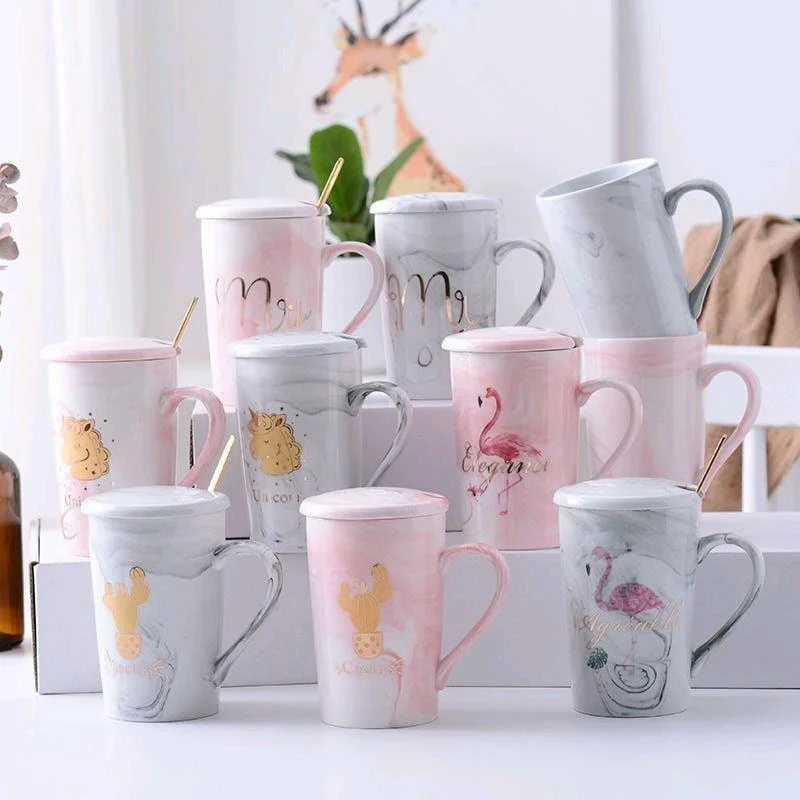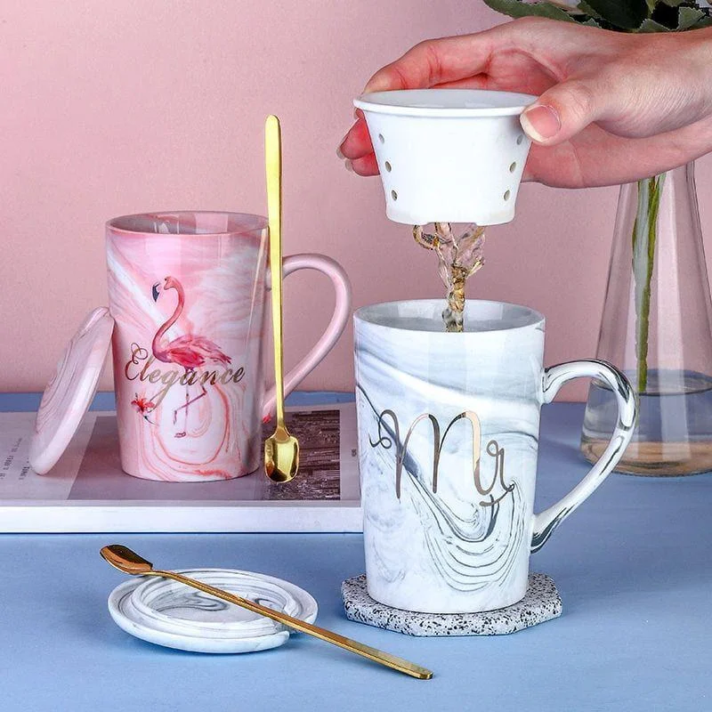 Tea Water Milk Coffee Use Cup White Bla n Color / Real 18 K Gold Letter??Shin Bling??With Spoon/Cover/Tea Leak Ceramics 380ml Mug Cup Sets