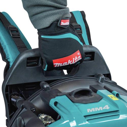 Makitas 52.5 cc MM4 backpack blower (EB5300WH) combines a cleaner-burning 4-stroke engine with quieter operation and the convenience of no fuel mixing. The cleaner-burning, fuel-efficient EB5300WH is a true step-up from older 2-stroke motors. Its engineered for commercial lawn and garden work, and is ideal for any professional seeking a best-in-class backpack blower. The EB5300TH is powered by a 52.5 cc commercial-duty 4-stroke engine that requires no fuel mix and will deliver commercial duty performance with a maximum air speed of 184 MPH and a maximum air volume of 516 cubic feet per minute. The mechanical automatic engine decompression is engineered for quick and easy starts, with heavy duty anti-vibration mounts between the frame and engine for improved operator comfort. The EB5300WH is compact with less weight (only 19.7 lbs.) with wide padded straps and padded back panel for operator comfort. In addition, the large capacity muffler ensures quiet operation at 70dB(A).