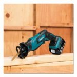 Versatile cutting solution that combines variable speed and 1/2 in. stroke length with an exclusive dual-position on/off switch that allows for either paddle or trigger switch operation. Contractors get faster, more efficient cutting along with the convenience of tool-less blade changes and a fast charge time. Part of Makita’s expanding 18V lithium-ion series, they spend more time working and less time sitting on the charger. For improved tool performance and extended battery life, Makita created Star Protection Computer Controls. Star Protection is communication technology that allows the Star Protection-equipped tool and battery to exchange data in real time and monitor conditions during use to protect against overloading, over-discharging and overheating. For increased versatility, the tool can also be powered by Makita 18V LXT and compact lithium-ion batteries with the star symbol on the battery indicating Star Protection inside.